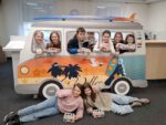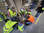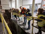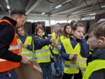 Die Produktion vom Anfang als Papierbogen bis hin zur Wellpappe konnte in allen Schritten mitverfolgt und die riesigen Roboter „bei der Arbeit“ beobachtet werden. Es wurden fleißig Kartons in verschiedenen Größen gefaltet, die größte Größe „verpackte“ fast die gesamte Forscherklasse. Die Schülerinnen und Schüler sahen die noch dampfende Pappe, nachdem die Papierrollen in beheizten Walzen eingespannt und „gebügelt“ wurden und die Weiterverarbeitung der anfallenden Reste. Sie lernten etwas über einseitige, einwellige und zweiwellige Kartonagen sowie über die B-,C-, E- und F-Welle und die verschiedenen Arten der Anordnung der verschiedenen Wellen zur Erhöhung der Stabilität.