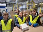 Die Jungforscher und -forscherinnen waren beeindruckt von der Größe des Firmengeländes (42000 qm) und der Freundlichkeit der Mitarbeiter und Mitarbeiterinnen, die für alle Fragen ein offenes Ohr hatten. Sie erfuhren, dass Kartons speziell nach den Wünschen der Kunden entworfen und so produziert werden, sei es für den Winzer aus unserer Region oder Großkunden wie Amazon und Zalando. Je nach Bedarf werden individuelle Lösungen gefunden, damit Kartons schnell und einfach aufgestellt und dann verklebt oder mittels Selbstklebe- und Aufreißstreifen verschlossen werden können.
