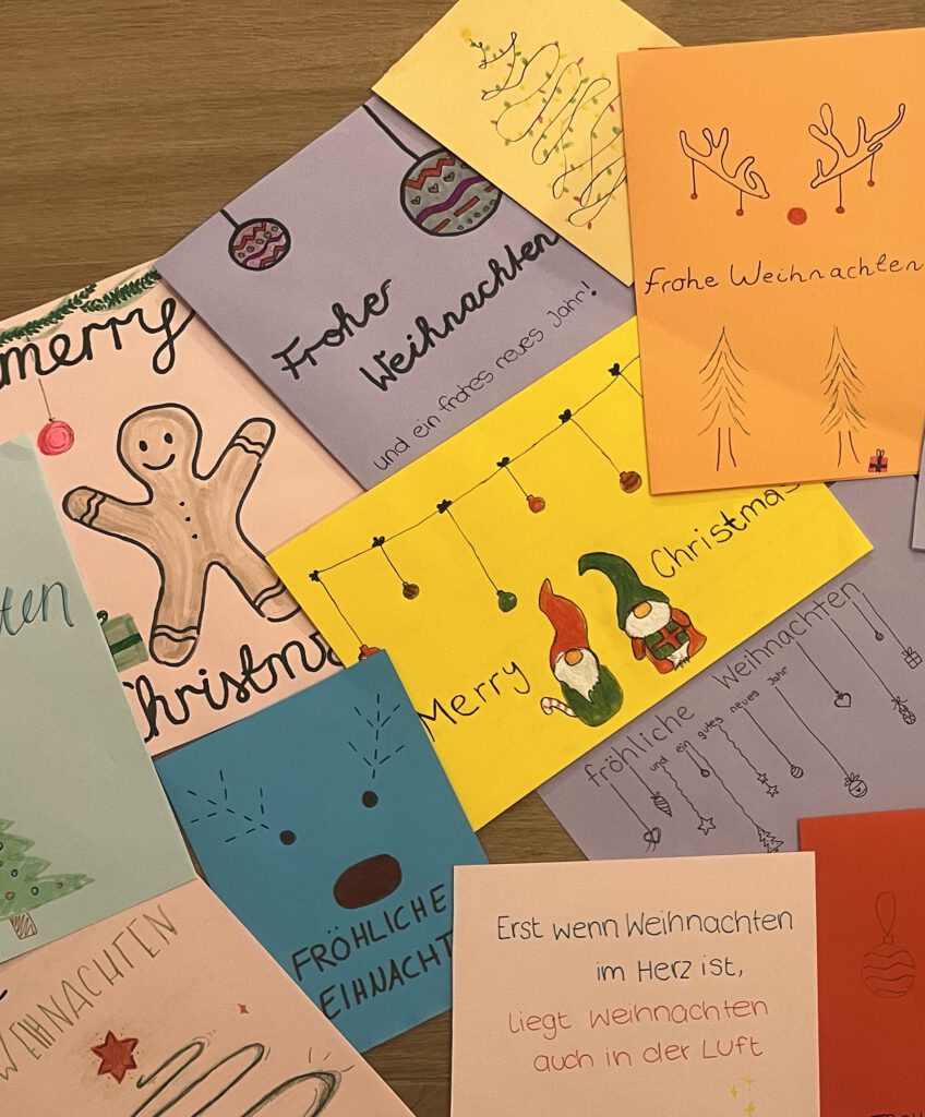 Mit großer Begeisterung schrieben und bastelten die Kinder und Jugendlichen ihre Weihnachtsgrüße. Jede Karte ist ein kleines Zeichen der Wertschätzung und Mitmenschlichkeit und soll den Seniorinnen und Senioren ein Lächeln ins Gesicht zaubern.