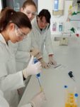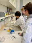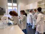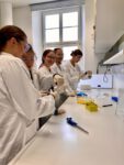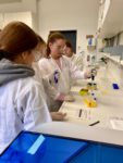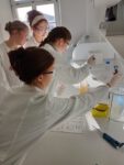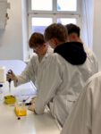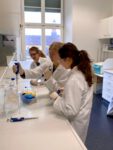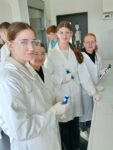 Die Schülerinnen und Schüler fühlten sich wie echte Forscherinnen und Forscher, da sie zunächst mit Kitteln, Schutzbrillen und Handschuhen ausgestattet wurden. Mit Laborgeräten und deren Handhabung vertraut gemacht, konnten sie mit ihren Experimenten starten.