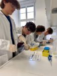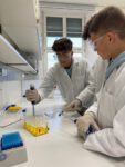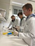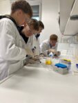 Im Fokus lag der ELISA-Test (Enzyme-linked Immunosorbent Assay), ein etabliertes, antikörperbasiertes Nachweisverfahren für echte oder fiktive Krankheitserreger. Das Bedienen moderner Geräte und das sehr genaue Arbeiten begeisterte die interessierten Gymnasiastinnen und Gymnasiasten. Ein perfekt ausgestattetes Forschungslabor und die engagierte Betreuung durch die Mitarbeiterinnen des Instituts machten den Tag zu etwas ganz Besonderem. Unterstützt durch Frau Färber, Frau Brügel und Herrn Reinhard konnten sie viele neue Eindrücke sammeln.
