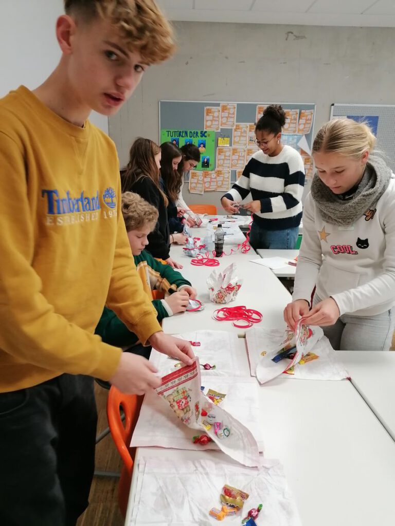 Nach dem offiziellen Schulschluss bereiteten die Tutoren in den jeweiligen Klassenräumen der 5. Klassen mit viel Liebe zum Detail individuelle Klassenadventskalender vor – gefüllt mit süßen Überraschungen und kurzen, inspirierenden Texten – parallel dazu fand ein großes Bastelvergnügen statt.