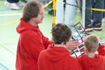 Der modulare Basis-Roboter wurde gegenüber dem letzten Jahr nicht verändert, lediglich neue Aufsätze kamen zum Einsatz. Die so gesparte Zeit konnte in verschiedenste Optimierungen investiert werden und so konnte der Roboter durchweg überzeugen: kein Lauf blieb unter der 300-Punkte-Marke. Dies allein ist für sich bereits ein recht respektables Ergebnis und zeugt von der hohen Präzision, sowohl der Mechanik als auch der Programmierung. So mussten sich die „Dragons“ mit 380 Punkten in der Vorrunde lediglich den „X-Rays“ aus Würzburg (390 Punkte) knapp geschlagen geben. Das Viertelfinale wurde dann ein Wechselbad der Gefühle. Von den vier besten Mannschaften waren drei mit 310 Punkten gleichauf. Mit gerade einmal 5 Punkten dahinter konnte sich die Mannschaft nicht für das Halbfinale qualifizieren. Im folgenden Stechen um den Einzug fuhren sie aber noch einmal außer Konkurrenz als Sparring-Partner mit. Und dieser Lauf wurde der beste dieses Tages: 390 Punkte! Hätten doch vorher bloß nicht die 5 Punkte gefehlt …