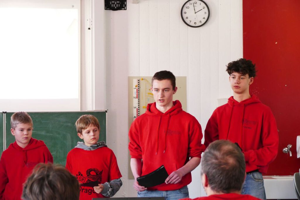 In der Kategorie „Forschung“ stellte die „Dragons“ gekonnt ein Projekt vor, mit dem archäologische Ausgrabungen mithilfe von Drohnen besser unterstützt werden können. Gleich drei namhafte Experten konnten sie hier als Berater ins Feld führen. Das Robot-Design überraschte die Jury mit einem völlig neuen Konzept der Programmierung. So wird der Roboter nicht mehr schrittweise mit Bewegungskommandos programmiert. Vielmehr werden in einer selbst erstellten grafisch orientierten Software Wegpunkte vorgegeben, die dann automatisch zu einer möglichst „glatten“ Fahrt optimiert werden. Zusammen mit dem bewährten modularen Roboterdesign ein äußerst innovatives Konzept, das entsprechend zu Pluspunkten führte. Und nachdem die „Dragons“ durch und durch Teamfähigkeit von der 7. bis zur 12. Klasse zeigen (und auch leben), konnten sie auch in der Kategorie „Grundwerte“ überzeugen.