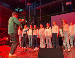 Vor einem großen, begeisterten Publikum herrschte eine mitreißende Atmosphäre voller gegenseitigem Support – auch zwischen den Schulen. Zwei Stücke in dieser besonderen Atmosphäre zu singen, war für unsere Sängerinnen und Sänger eine großartige Erfahrung.